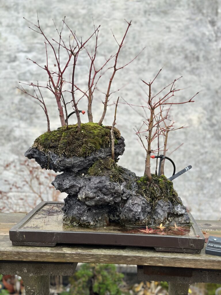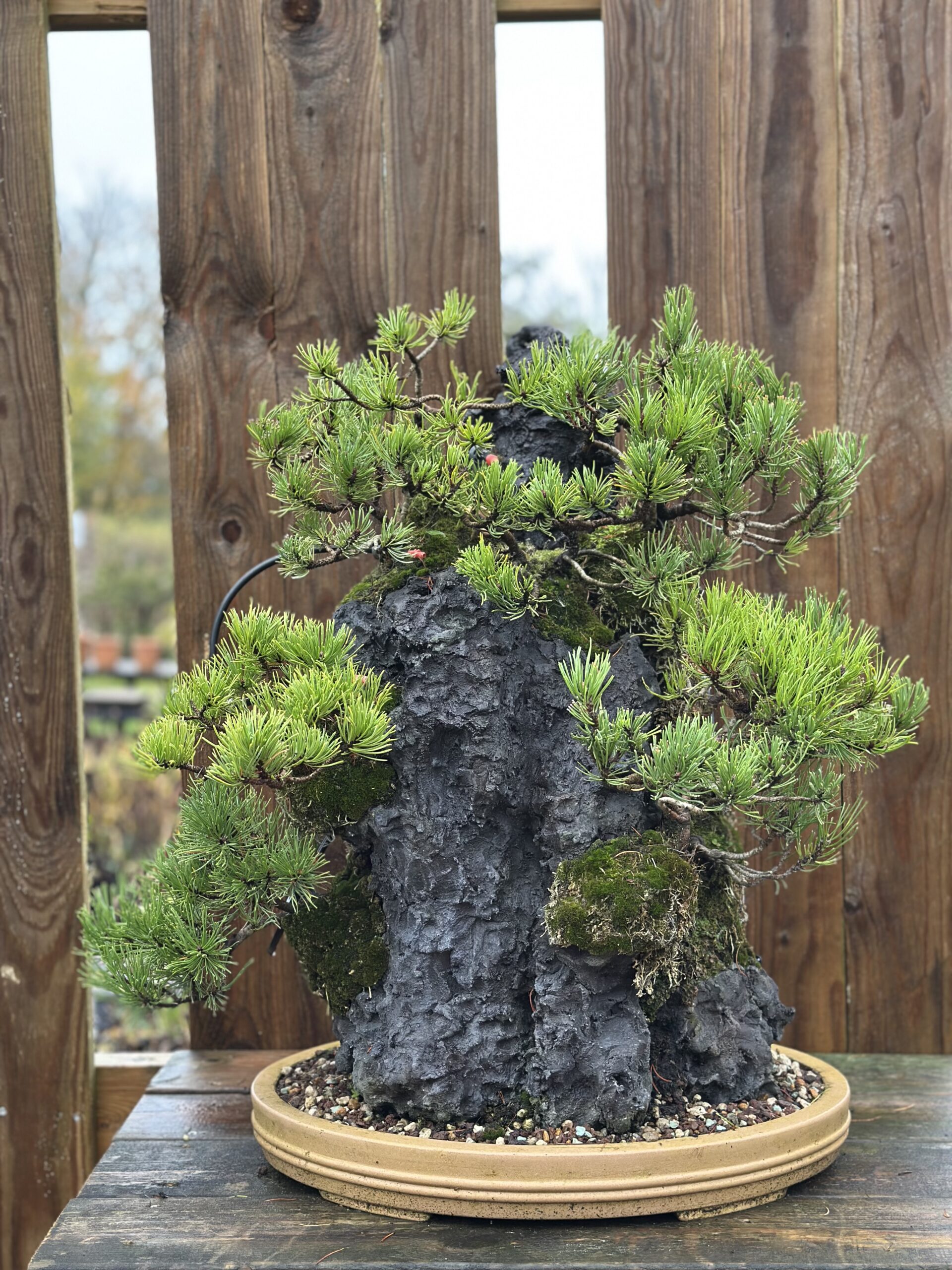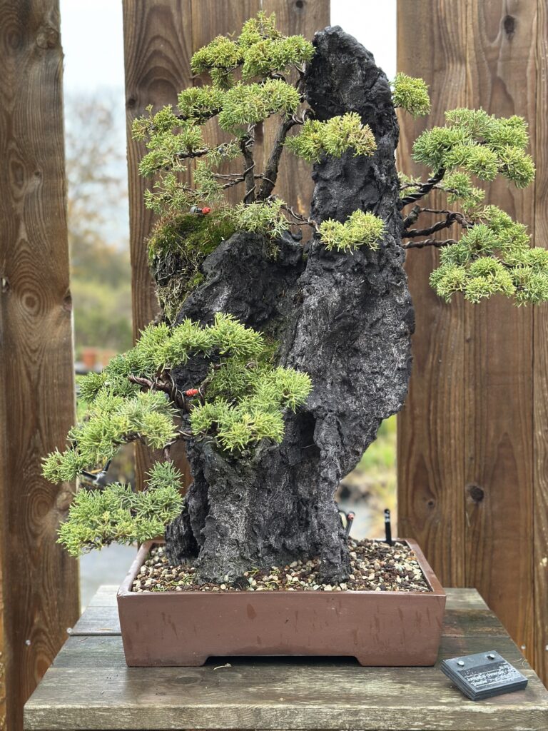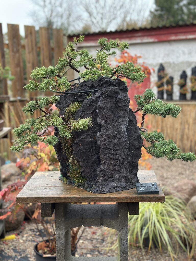 Her er afdelingen, hvor bonsai gror på klippelandskaber – Alle klipper er designet og udført af Ole Clæfer selv.