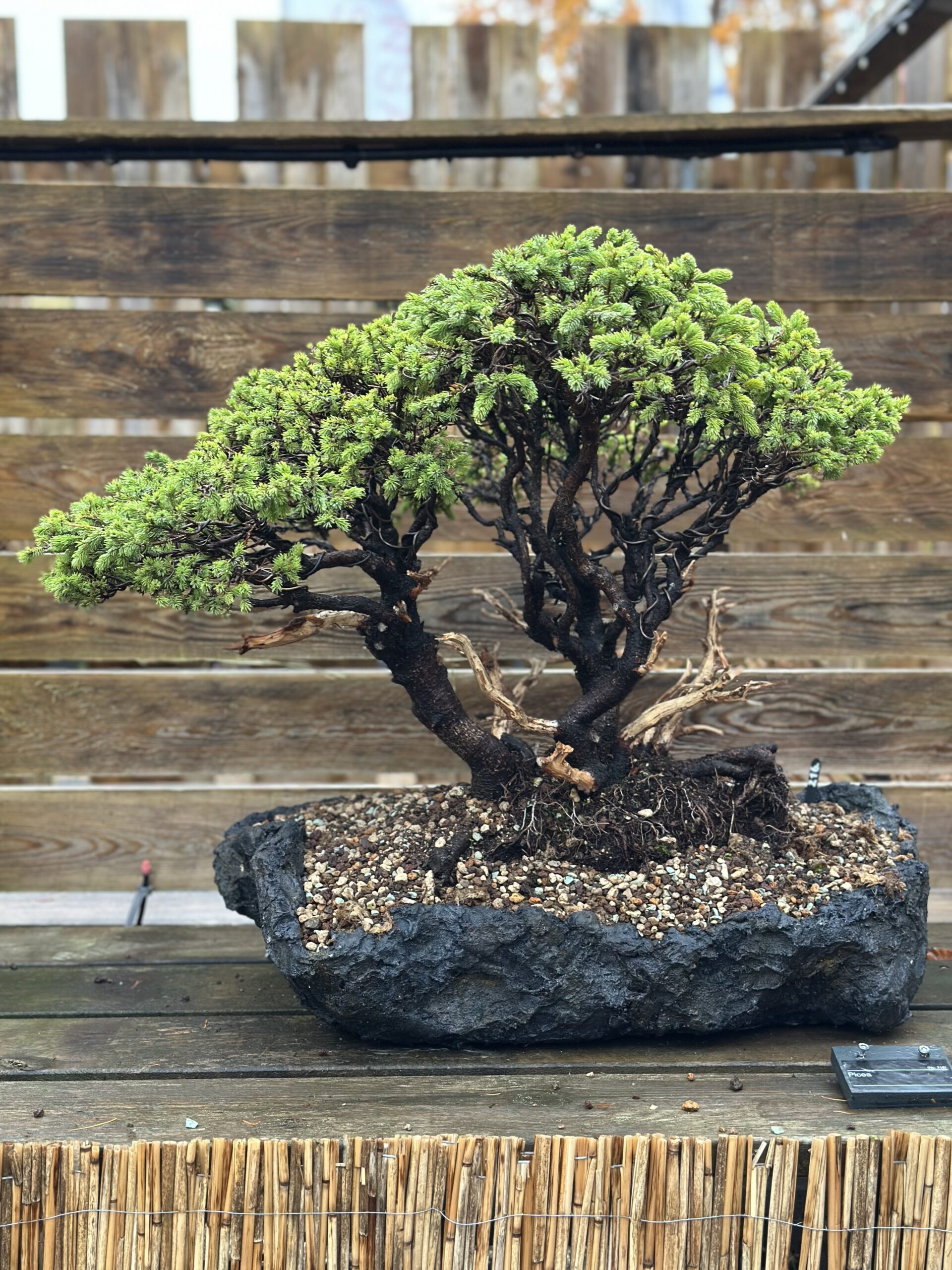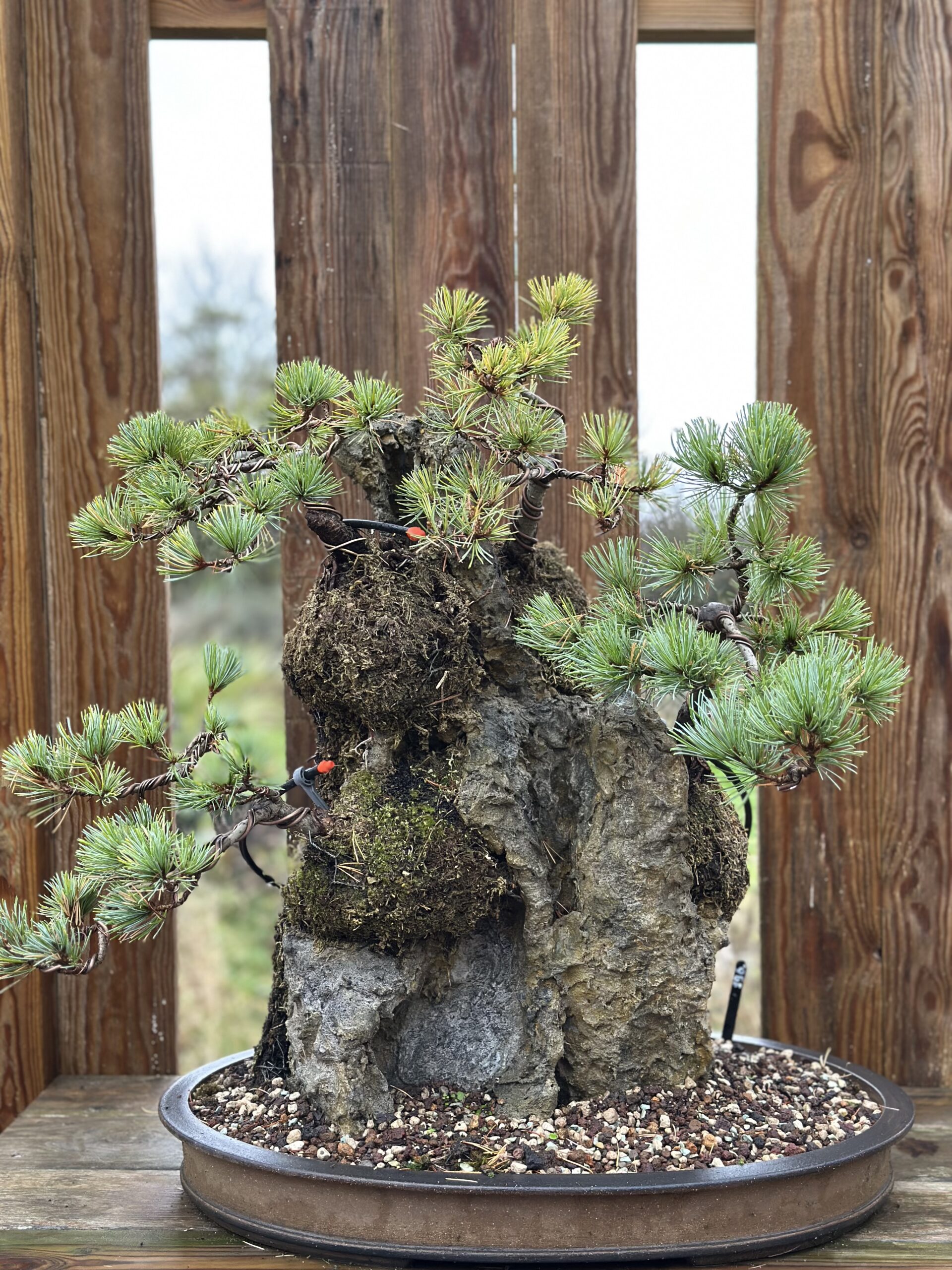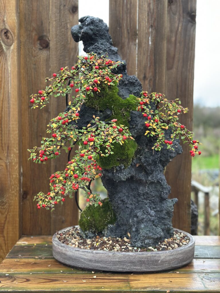 Her er afdelingen, hvor bonsai gror på klippelandskaber – Alle klipper er designet og udført af Ole Clæfer selv.