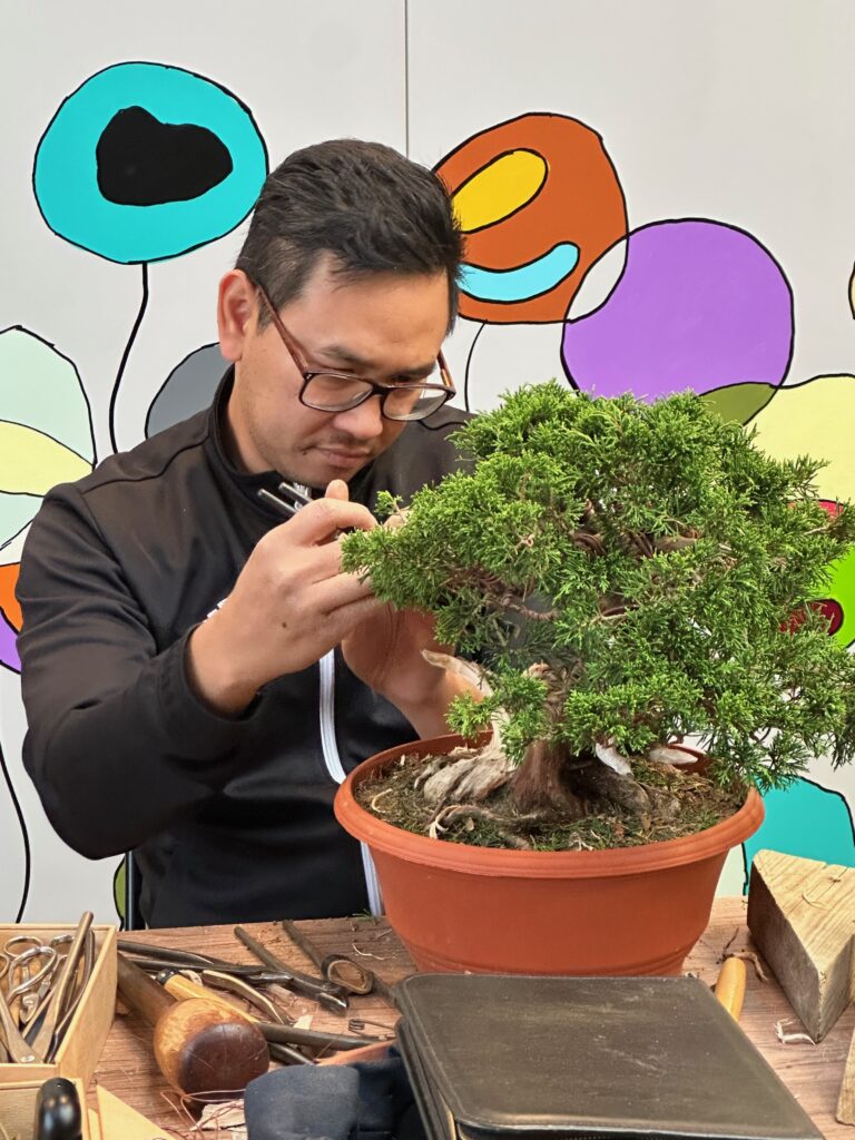 Det er både en workshop hvor der kan fræses/carves MEN ikke mindst kan der arbejdes med design/redesign af sine bonsaitræer i samarbejde med Will.